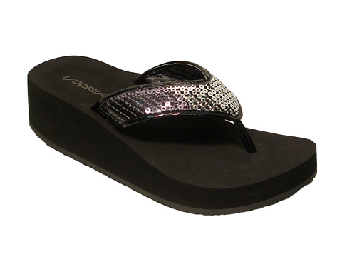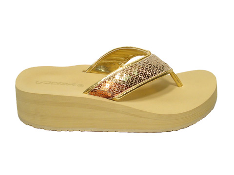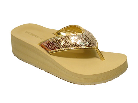 Sequined upper wedge thong.